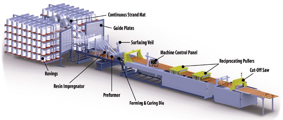 La pultrusione è un processo continuo per la produzione di profilati in materiale composito.